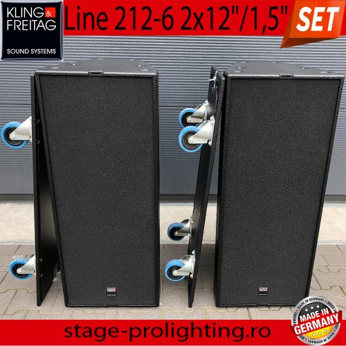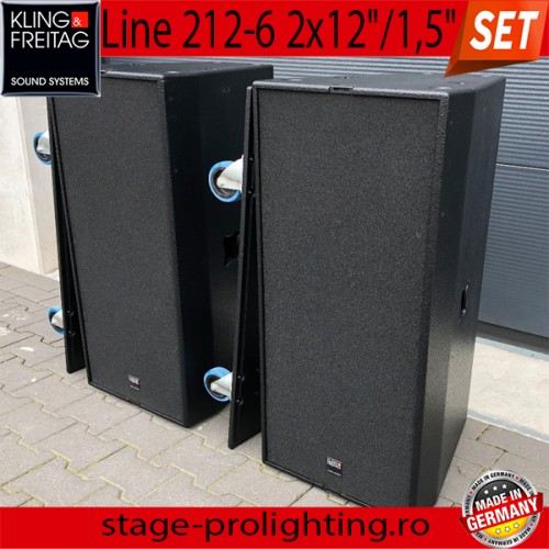 Kling & Freitag Line-212-6 SET se compune din doua speakere de banda larga, fiecare avand 2 x 12"+ 1,5". Importul se face din Belgia, boxele sunt S-H, ca noi, impecabile atat din punct de vedere tehnic, cat si estetic. Plata se face integral anticipat.