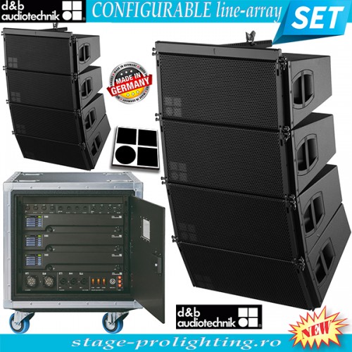 d&b audiotechnik Configurable line-array SET reprezinta invitatia magazinului nostru de a configura impreuna un sistem de sonorizare line-array de o calitate exceptionala a producatorului german. Avand acces la toate seriile line-array, respectiv: Seria V, Seria J, Seria Y, atentia noastra se indreapta in special catre seriile V si J (cele mai performante). Ca exemplu, la seria V, va propunem combinatiile V8-V12-Vsub alaturi de amplificatoarele D80. Pentru configurari specifice va rugam sunati la magazin.