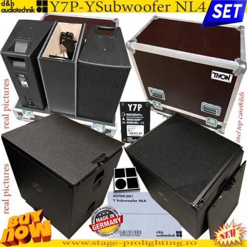 d&b audiotechnik Y7P-Y-Subwoofers ex-demo SET 1 este un sistem de sonorizare format din doua top-uri si doua subwoofere cardio pasive, toate noi, incluzand si hard case-ul pentru cele 2 top-uri si lid-urile pentru subwoofere. Subwooferele vin in ambalajul lor original d&b, cu serial, cod de bare, produse originale Made in Germany. Importul se face din Germania cu plata integral anticipat, iar produsele au garantia de 3 ani oferita de producator. Oferta (de ultima ora - Oct 2018) este limitata la un singur set, astfel incat primul venit va fi primul servit. Magazinul nostru nu garanteaza disponibilitatea acestui set mai mult de o saptamana, astfel incat pentru rezervarea produselor, sau verificarea disponibilitatii lor va rugam sunati la magazin.
