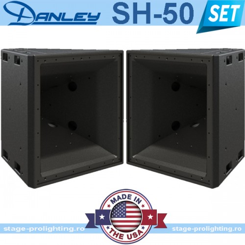 Danley SH-50 SET se compune din doua speakere pasive de banda larga (50 Hz - 18 kHz +/- 3 dB) extrem de puternice (1000 Watts Cont./4000 Watts Peak) la un maxim SPL 133dB, avand fiecare Low 2 x 12" Mid 4 x 5" High 1 x 1". Fabricate in SUA, beneficiaza de o garantie de 3 ani!!! Importul se face numai la comanda, cu plata anticipat, livrabile in maxim 8 zile.