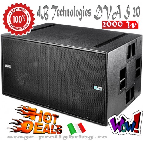 dB Technologies DVA S 20 dp este un subwoofer activ cu 2x 18" drivers, care lucreaza in banda de frecventa 25Hz-150Hz, 138dB maximum SPL, amplificator intern din clasa D, 2000W (RMS), avand crossover activ incorporat.
