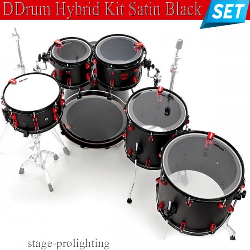 DDrum Hybrid Kit, color Satin Black, fully functional acoustic drum set that has been augmented with our industry-standard Acoustic Pro triggers - shock mounted to the interior of the drum, with your cable plugging into the shells' integrated XLR connections, birch wood shells, 6 piece Hybrid configuration 20" x 20" Bass Drum, 13" x 06" Snare Drum, 10" x 07" - 12" x 07" Tom Toms, 14" x 12" - 16" x 12" Floor Toms, 2xTom Arms, 2xTom Clamps, Triple Flange Hoops, shipped without Hardware / Cymbals / Electronic Module