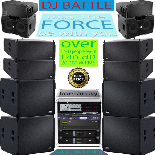 DJ Battle reprezinta un sistem de sonorizare perfect atat pentru aplicatii DJ, cat si pentru LIVE aplicatii, atat indoor cat si outdoor , testat pentru evenimente cu peste 1500 de persoane, a caror feed-back a fost simplu: ” EXCELENT!!”. Sistemul a fost atent gandit sa faca fata oricarei provocari. Cu o distributie a frecventelor optimizata atat pentru joase, cat si medii/inalte datorata atat procesorului de sistem DSP (management speaker 4080) cat si a filtrelor pasive incorporate in speakere, acest sistem va face auzite CLAR toate detaliilemixului dvs, sau a interpretarii, cu o acuratete ce nu lasa loc niciunui compromis din punct de vedere al calitatii. In materie de difuzoare si divere in acest sistem gasim tot ceea ce ne-am putea dori pentru ca raspunsul in frecvente si dinamica sa fie cel dorit: 4 x 18”+ 4 x 15” (subwooferele RKB), 4 x 12” (subwooferele side-fill punch TheBox), 12 x 10” + 10 x 8” + 8 x 3” + 4 x 1,4” neodym in modulele RKB si d&b line-array cu filtrajul aferent. De la 136dB in subwoofere si pana la veritabila dinamica de 142 dB in modulele line-array sunetul este perfect audibil atat de aproape, cat si de la 60m, iar ”presiunea” sunetului se impune nu numai in fata, ci si in laterale sub o dispersie de 110 grd. Acest lucru, deloc de neglijat, face ca atat modul „long throw”, cat si distributia frecventelor sa conlucreze la aria de acoperire, astfel incat plaja distribuirii sa fie sensibil marita. In functie de pozitionarea side-fillurilor completate si de cele doua subwoofere duble se va administra delay-ul celor din urma, astfel incat sa se obtina maximum de „punch” complementar pe medii joase si joase. Entertainerii, sau DJ-ul vor avea suficienta forta chiar si fara fortajul speakerelor, astfel incat limitarile sunt optionale. Nu insa si compresia. Pentru obtinerea unui maxim de randament de la acest sistem, compresia, hi-pass-ul si low-pass-ul trebuie reglate cu acuratete, iar de aceasta se ocupa 4080-ul care vine cu preseturile necesare astfel incat nu numai crossoverarea sa fie cea indicata, ci si compresia in functie de aplicatia la care este solicitat sistemul, genul de muzica, etc. D&b D12 vine de asemenea cu DSP-ul configurat deja pentru V8-uri si subwoofere, astfel incat numai reglajul delay-ului mai trebuie doar ajustat, raportat la pozitionare.