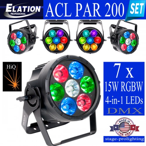 The new ACL PAR 200™ is a versatile par luminaire featuring (7) individual 15W RGBW 4-in-1 LEDs and the new advanced collimator optic lens, producing a laser-like homogenized 4° color-changing beam from each lens which combined produce a 11° beam angle. Features include full individual pixel control, strobe, and selectable dimming curve effects, DMX, RDM (Remote Device Management), KlingNET™ and Art-NET support, 3/5pin XLR, powerCON, and RJ45 ethernet in/out connections, (4) button control full color 180° reversible menu display, 135W max power consumption, a multi-voltage universal auto switching power supply (100-240v), and included glare shield and frost filter.