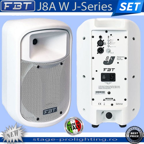 FBT J8A W J-Series SET se compune din doua speakere active. Pretul exprimat este pentru 2 bucati. Excelente atat pentru monitorizare, cat si pentru sonorizari tip lounge in restaurante, baruri, hoteluri, etc, aceste speakere prezinta si avantajul discretiei in amplasamente fixe (montate de exemplu pe perete) datorita culorii albe si a dimensiunilor reduse. Avand nu mai putin de 250 W RMS fiecare, sunt suficient de puternice pentru a acoperi suprafete generoase cu un sunet placut, clar, in toata banda de frecvente 60-20000 Hz. Fiind active, cablajul se realizeaza foarte usor prin intermediul cablurilor XLR, acestea putand fi de asemenea de culoare alba pentru integrarea arhitecturala discreta. Produse recomandate de stage-prolighting.ro