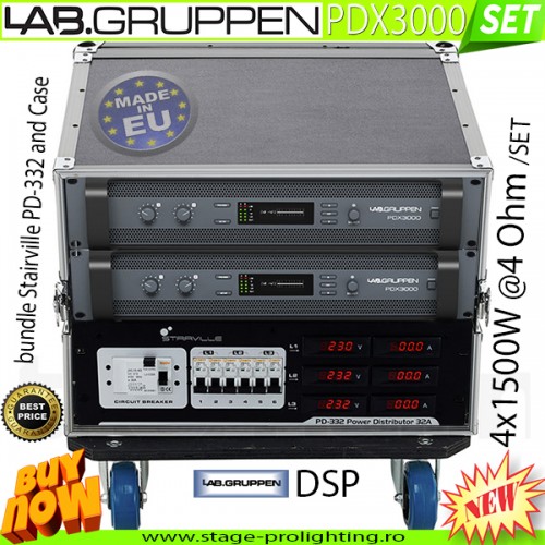 LabGruppen PDX3000 DSP amps SET este poate una din cele mai bune alegeri ale momentului sub raportul calitate/pret in materie de rack-uri de amplificatoare. Nou aparutele PDX3000 de la LabGruppen (originale) nu numai ca satisfac ca randament de putere (2x1500W @4 Ohm) cerintele, dar DSP-ul incorporat le face extrem de atractive ca si flexibilitate. Stabile si la 2 Ohmi, deja aceste amplificatoare devin extrem de competitive. Proiectate si asamblate in Suedia.