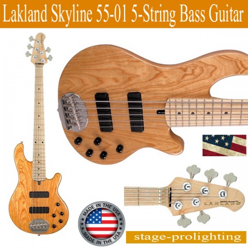 The Skyline 55-01 Electric Bass Guitar retains all the key features that have made Lakland the choice of professionals: ash body, flat-sawn maple neck, a choice of fretboard woods, Bartolini MK1 split-coil soapbar pickups, and 3-band buffered active preamp. Controls include cut/boost bass, mid, and treble; a panning-style pickup blend; and master volume (with pull-out switching to bypass EQ). 35" scale.