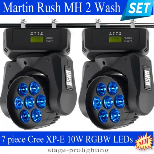 Martin-Rush-MH-2-Wash este un set de doua moving head-uri, fiecare avand 7 LED-uri extrem de puternice tip CREE (SUA) de cate 10W, RGBW. Controlabile prin DMX, aceste moving head-uri se misca rapid, avand un randament de lumina foarte bun si niste culori superbe. Pretul afisat este pentru un set de doua bucati si reprezinta o oferta speciala. Import Germania, 3 ani garantie!!!