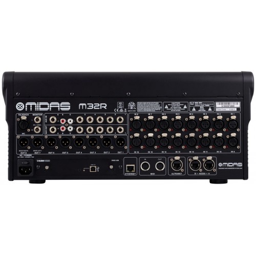 Midas M 32 R, Digital Mixer, 16 Mic Inputs, 8 XLR Outputs, 8 DCA and 6 Mute Groups, 25 Motor Faders, 5" Colour Display, 32x32 USB Audio Interface, 25 Mix Buses, DAW remote Control, Wireless Remote Control by IOS App, AES 50 Network (up to 96 Inputs and 96 Outputs), 2x 6,3 mm Headphone outputs, Midi, Rack mount brackets included for ultimate flexibility, Dimensions 478 x 617 x 208 mm, Weight 14,3 Kg