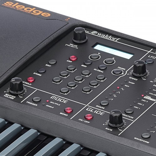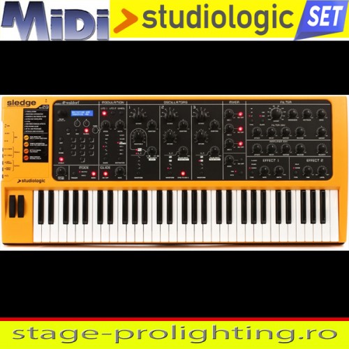 - Studiologic Sledge 2 Black Edition, 61-Key Synthesizer, semi-weighted keys, 24 Voices polyphony, DSP with Waldorf modelling technology, 3 thomann Oscillators per voice, 60MB Flash Memory for Samples, 1 Multi Mode Filter per voice, Dual Mode, 2 fast LFOs per voice, 2 simultaneuous Effects, 32 Pots, Pitch and Mod Wheel, 2 x 16 digits backlit LCD, up to 1000 Sounds, Connections: Stereo line output, thomann Headphone output, Expression pedal input, MIDI in and out, USB (MIDI), Dimensions: 97 x 40,5 x 11 cm, Weight: 8,3 kg