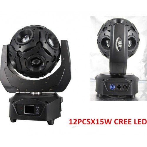 Moving head de ultima generatie cu 12 extreme bright CREE Leds, fiecare led de 15W, full color, infinite rotation. Controlabil DMX 512, sau functii de auto si sound.