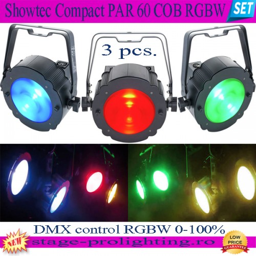Showtec Compact PAR 60 COB RGBW este un set compus din 3 PAR COB de cate 60W fiecare!. Pretul exprimat este pentru 3 buc, import Germania, 3 ani garantie!!!