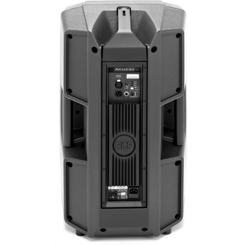 RCF ART 745-A - full-range active loudspeaker (15" + 2"), 700W, digital bi-amped, convection cooled, 90º x 60° dispersion, 15" woofer with 3" voice coil and 2" ceramic driver, 128dB maximum SPL, built-in DSP with boost EQ and soft limiter, XLR/jack input (mic/line switchable), XLR parallel out, ABS plastic housing, speaker stand flange, 2x M10 flying points. Dimensions: 637 x 384 x 363mm. Weight: 20,2 kg