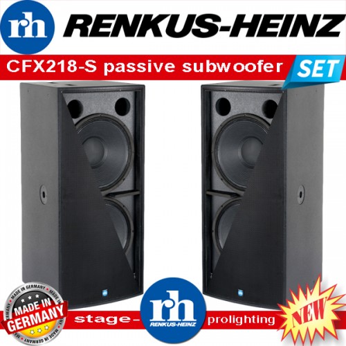 Renkus-Heinz CFX218-S subwoofer SET se compune din 2 subwoofere pasive 2 x 18". Import Germania, 3 ani garantie!!! Pentru detalii privind pretul si modalitatea de achizitie va rugam sunati la magazin. Produsul de aduce numai la pre-comanda.