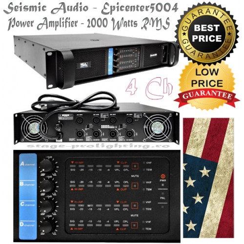 Seismic Audio - Epicenter5004 - 4 Channel Power Amplifier - 2000 Watts RMS @ 8 Ohms - 3400 Watts RMS @ 4 Ohms
