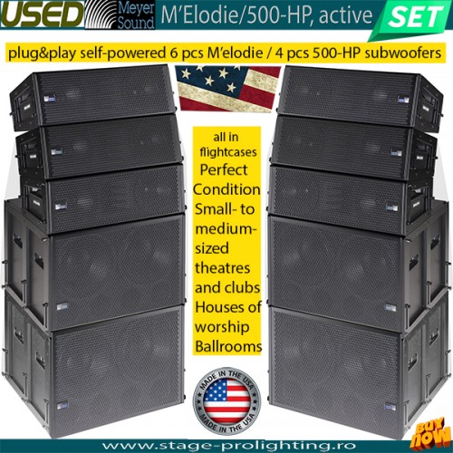 USED Meyer Sound 6pcs M'elodie & 4pcs 500-HP, as new SET se compune din: