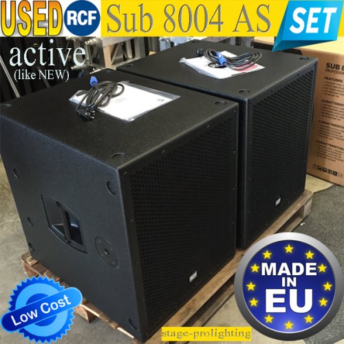USED RCF Sub 8004 As SET. Super pret pentru aceste doua subwoofere active de la RCF, recunoscute pentru calitatea sunetului. Produsele sunt ca noi, desigilate, impecabile. Oferta limitata doar la un SET. Pretul exprimat este pentru 2 bucati RCF Sub 8004 As. Import Germania, 2 ani garantie!! La acest SET primul venit va fi primul servit!!