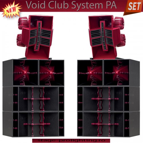 Cotate printre cele mai sofisticate sisteme de amplificare in cluburi, produsele Void au performante remarcabile. Pentru sistemul prezentat doar ca advertising, indisponibil momentan, stage-prolighting face eforturi sa obtina atat un produs demo, cat si o cotatie rezonabila de pret. Pentru mai multe detalii va stam la dispozitie telefonic. Specificatiile tehnice ale componentelor acestui sistem pot fi accesate in pagina producatorului.